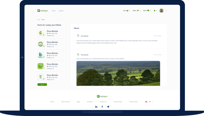 Our platform allows you to support both small local producers and organic producers. Prices are set by the producers, we provide them full transparency of the costs of each transaction, and you can chat directly with each farmer.